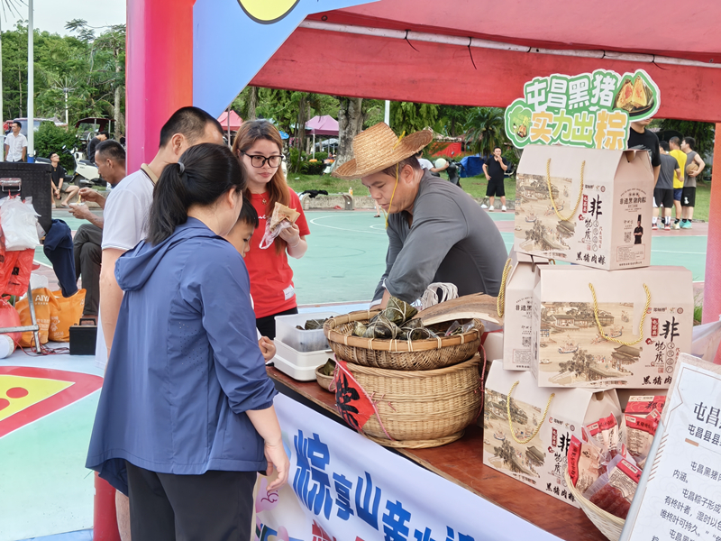 5月2日,海南省屯昌县文体公园开展了“粽享山亲水近情 端午寻乐趣屯昌”粽子促销活动。活动现场,屯昌黑猪实力“出圈”,以非遗技艺与标准化书写特色美食品牌升级新篇章。