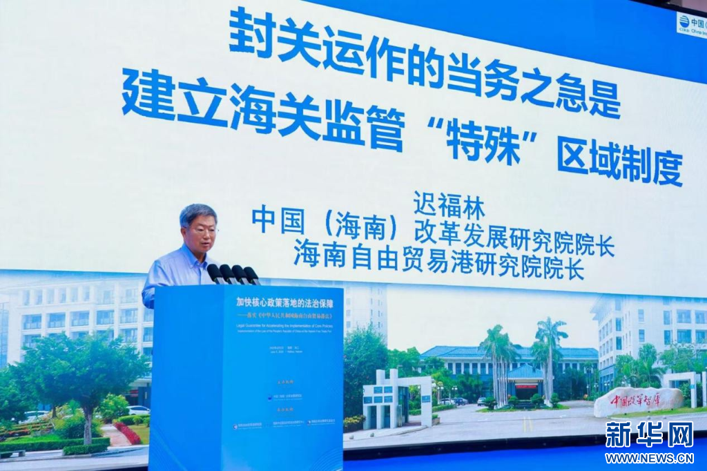 新华网海口6月6日电(记者吴茂辉、王与点)5日下午,由中国(海南)改革发展研究院主办,海南自由贸易港研究院、海南中改国浩自贸港法律研究中心、海南改革发展研究基金会承办的“加快核心政策落地的法治保障——落实《中华人民共和国海南自由贸易港法》”研讨会在海口举行。会议聚焦海南自由贸易港核心政策的法治化路径,围绕加紧“加紧核心政策落地的法治保障”“国家建立健全全岛封关运作的海南自由贸易港海关监管特殊区域制度”等两大议题,展开深入对话交流。