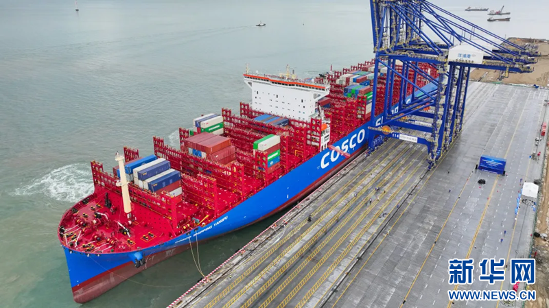 甲醇双燃料动力集装箱船停靠洋浦港并完成首次绿色甲醇加注。新华网发