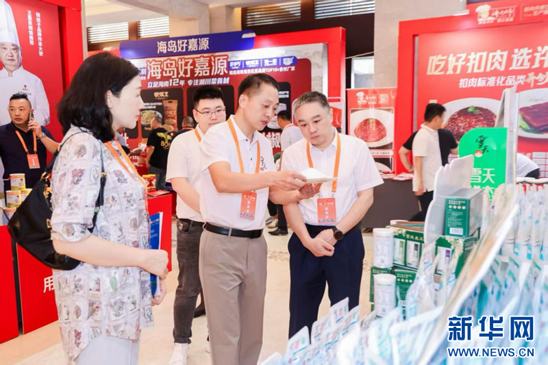 参展商向嘉宾介绍产品雪天盐。新华网发