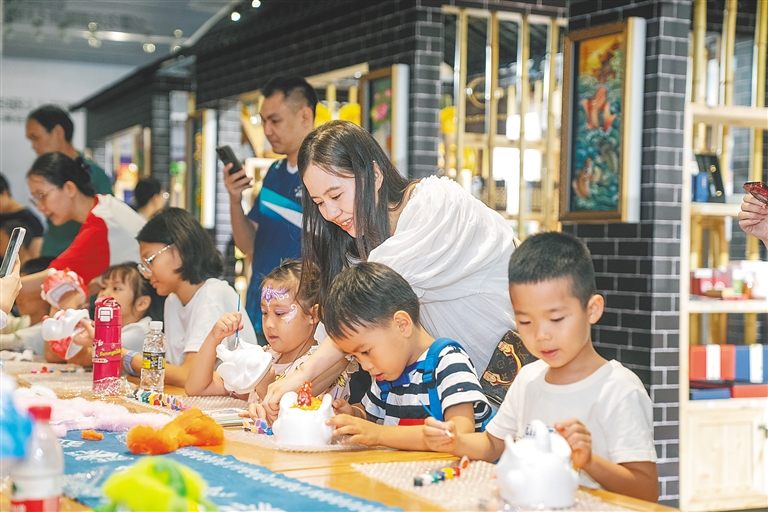 “孩子放暑假后,我常带他来非遗展示中心,既能躲躲暑气,又能参与活动、感受传统文化的魅力。”毛君君笑着说,夏日午后孩子总想出外玩耍,博物馆、文化馆、图书馆这类文化场所便成了她的首选,“在这里参加些活动,凉快又充实,孩子也能学到不少东西。”