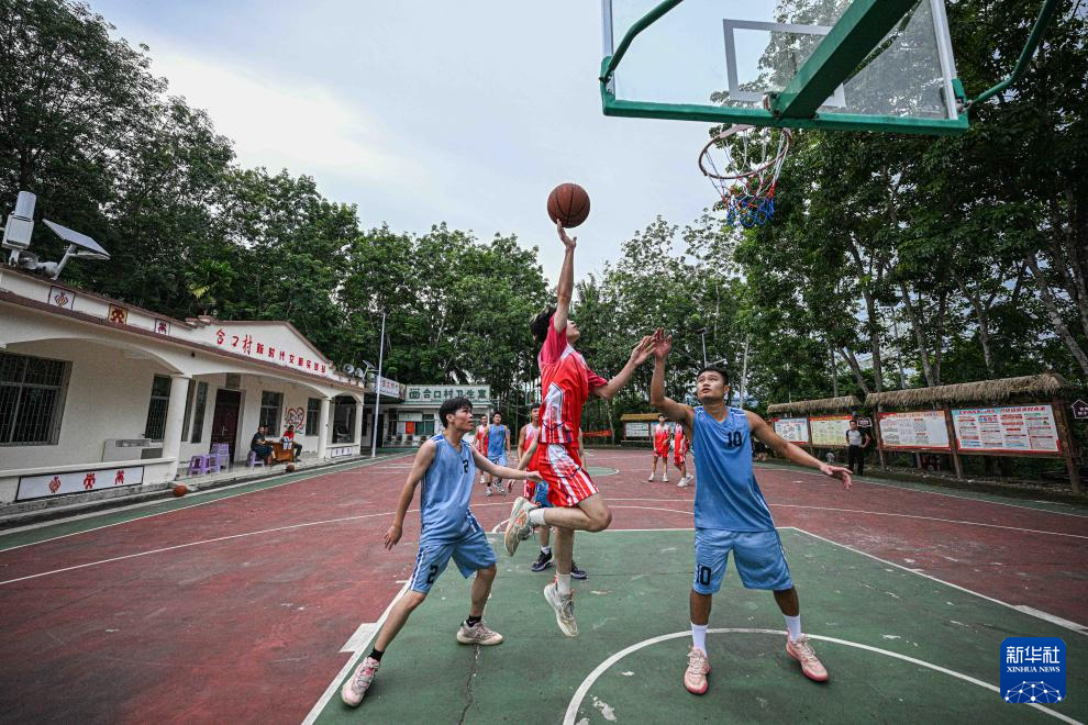 人们在海南保亭响水镇合口村进行篮球比赛(7月23日摄)。合口村是黎族村庄,于2025年5月获评“全国文明村镇”。新华社记者 蒲晓旭 摄