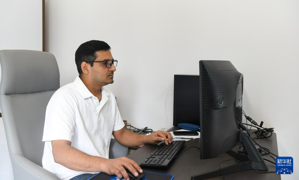 7月28日,瓦西姆·拉扎在中国热带农业科学院热带作物生物育种全国重点实验室的办公室工作。新华社记者 杨冠宇 摄