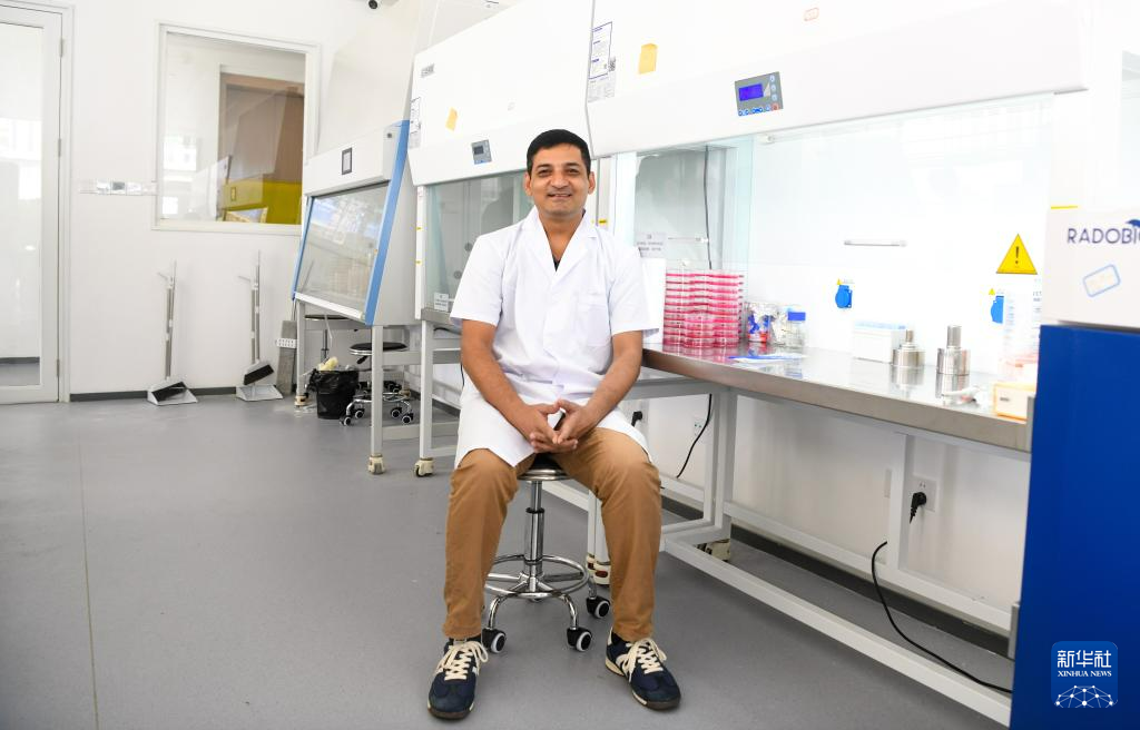 7月29日,瓦西姆·拉扎在中国热带农业科学院热带作物生物育种全国重点实验室。新华社记者 杨冠宇 摄