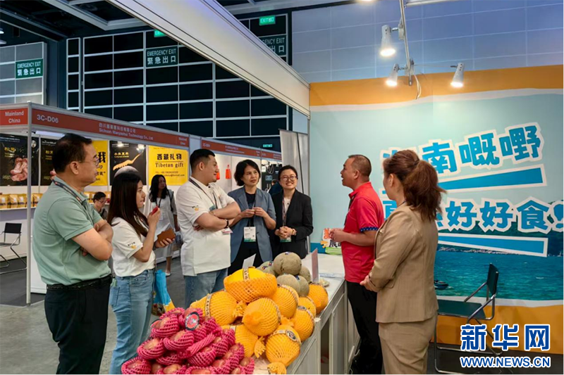8月14日,2025香港美食博览会海南展团在香港建华集团考察,并推介海南优质农产品。新华网发
