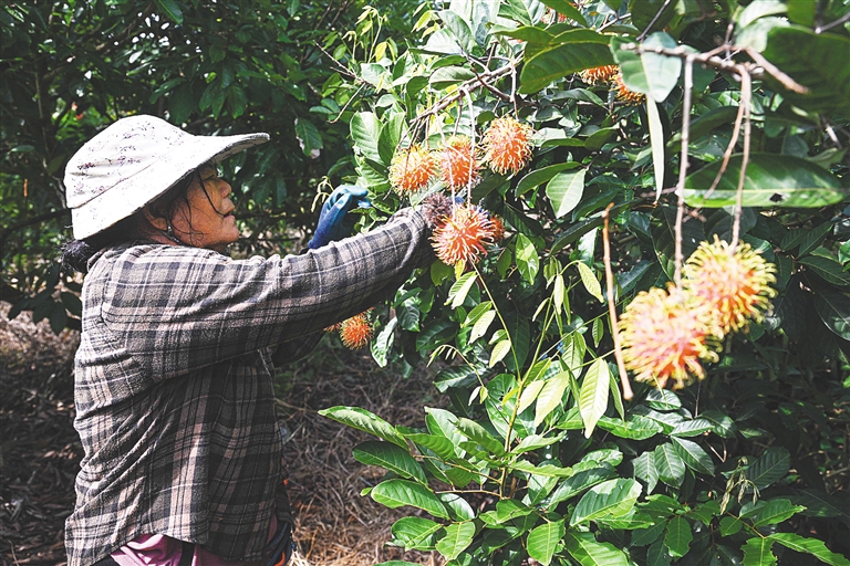 当前,保亭正在推动红毛丹产业从卖原料向卖加工产品、卖“品牌”转变,打造红毛丹文化丰收季活动、开发观光休闲游、度假养生游、采摘体验游等农旅融合体验业态,让红毛丹从“土特产”转变为“潮玩IP”,一二三产持续融合发展,让群众富了口袋,“甜”了生活。