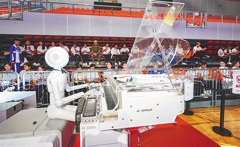 九月五日,二〇二五年海南省全国科普月主场活动现场,机器人演奏钢琴。海南日报全媒体记者 陈元才 摄