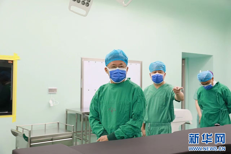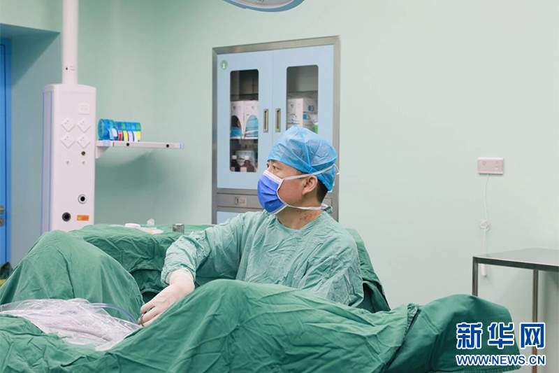 泌尿外科主任陈国强为患者实施经尿道前列腺气化电切术,此为中心手术室二区启用当天进行的第一台手术。