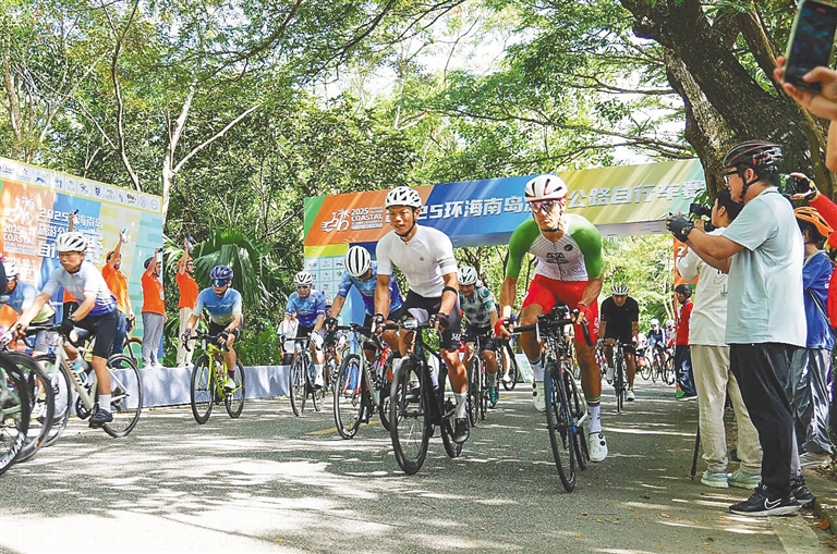 2025环海南岛旅游公路自行车赛万宁站在兴隆热带雨林自行车绿道举行。万宁市旅文局供图