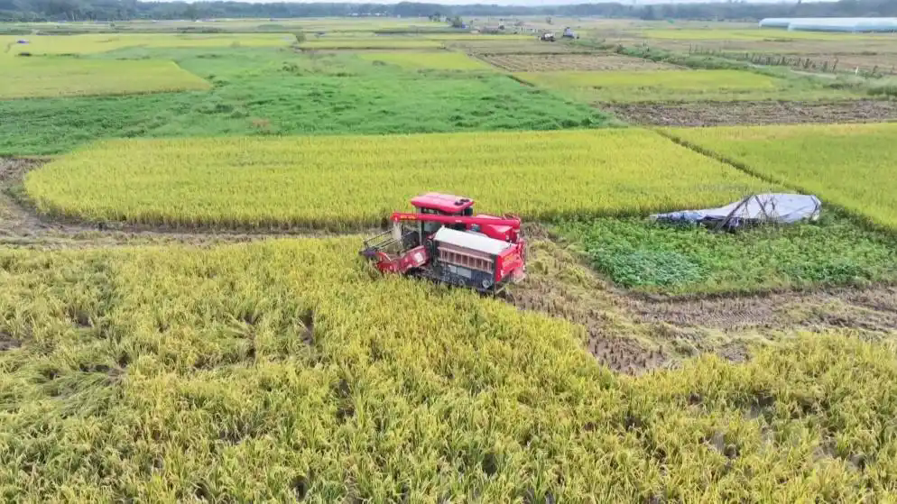 近日,在屯昌县枫木镇枫木田洋,沉甸甸的稻穗压弯了稻秆,多台大型收割机在稻田中来回穿梭作业。据统计,今年屯昌中晚稻收成面积约有8.37万亩,当前各镇农户们正在积极抢收晚稻。