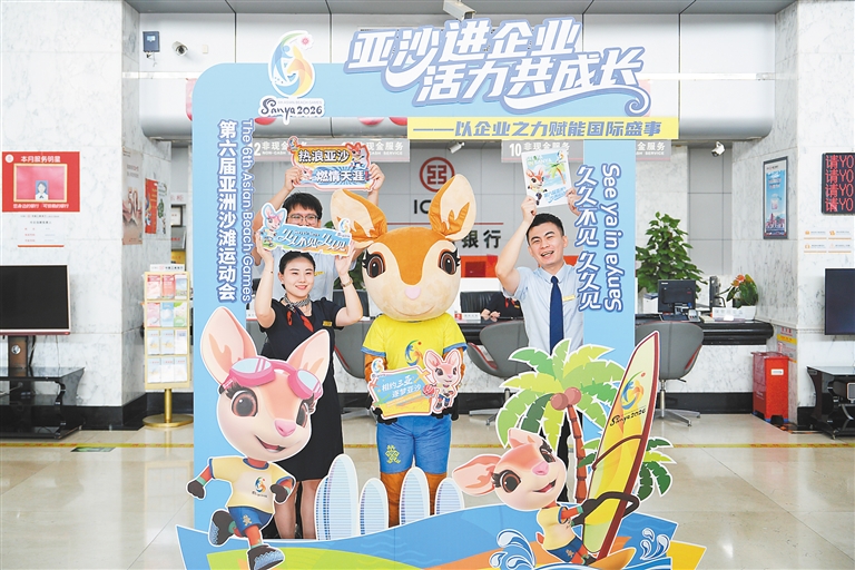 三亚亚沙会吉祥物“亚亚”走进中国工商银行开展宣传活动。三亚亚沙会组委会供图