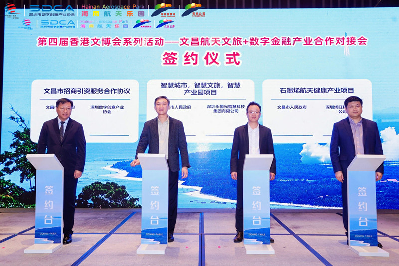 11月20日,第四届香港文化产业博览交易会(以下简称“香港文博会”)系列活动——海南文昌航天文旅+数字金融产业合作对接会在文昌市举行。此次对接会以“航天赋能文旅,数字链接金融,合作共赢未来”为核心主题,精准搭建琼港粤三地产业资源联动桥梁,展示文昌国际航天城的投资环境与发展机遇,推动航天文旅与数字金融产业深度融合。